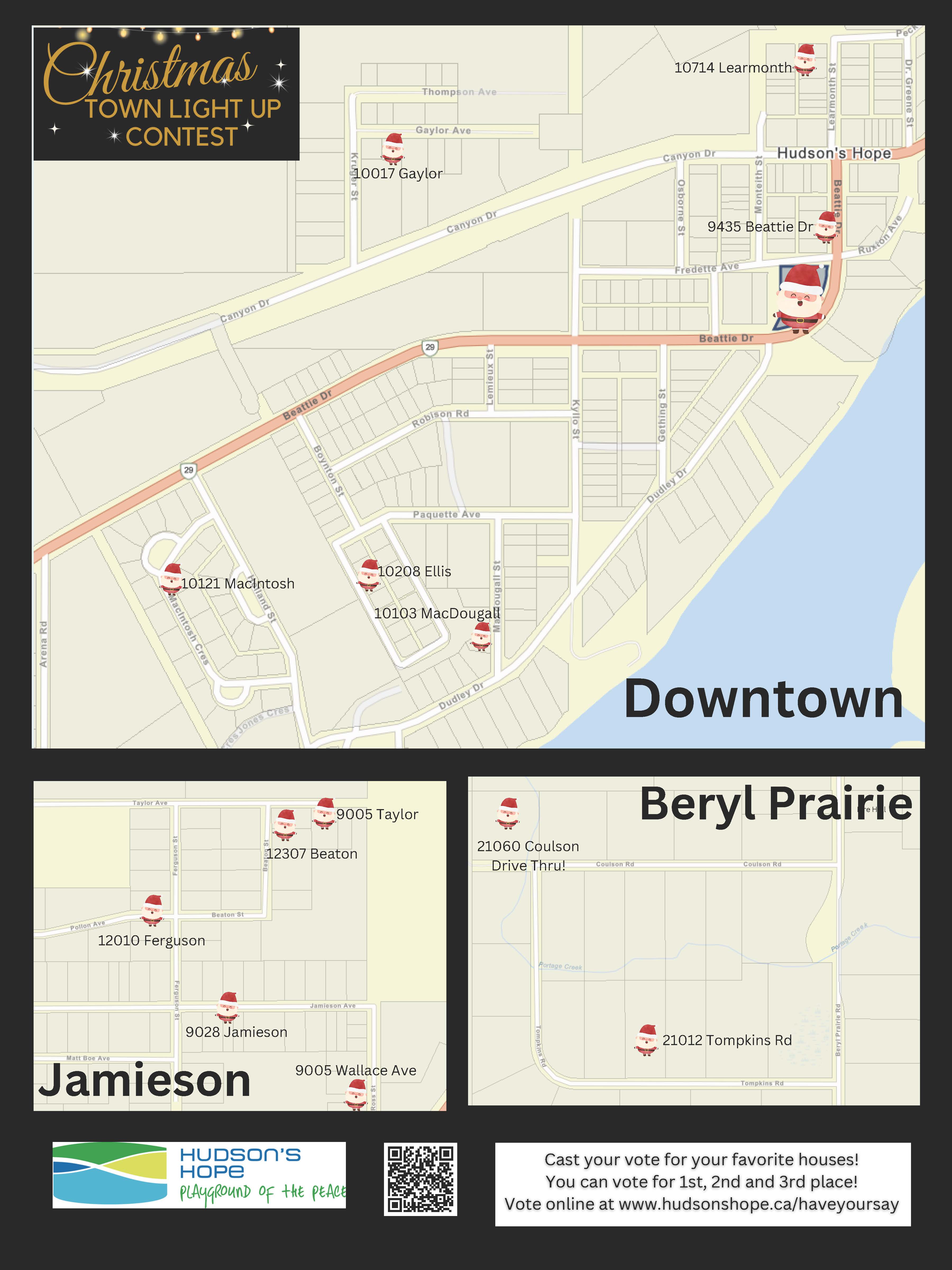 Take a festive drive around town and choose your top 3 favourite decorated houses — use the map below to guide your route.